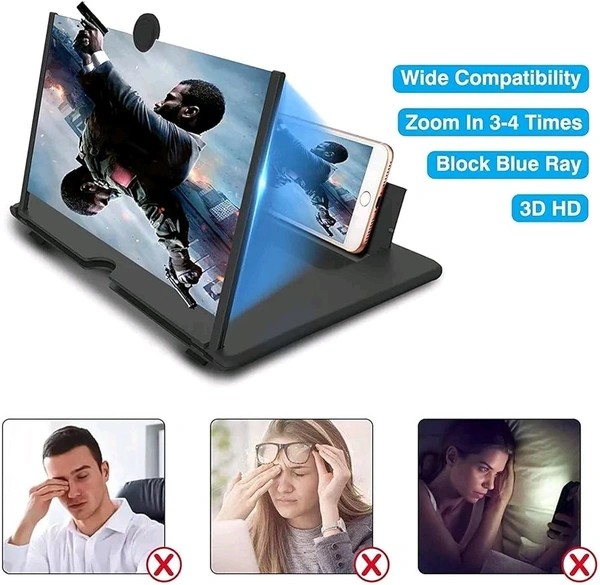Upgrade your mobile viewing with the VISIONMAX 3D HD Mobile Screen Magnifier, designed to enhance your smartphone screen up to 2-4 times. With a crystal-clear 12-inch HD lens, this screen amplifier offers an immersive experience for movies, gaming, video calls, or reading — without straining your eyes.