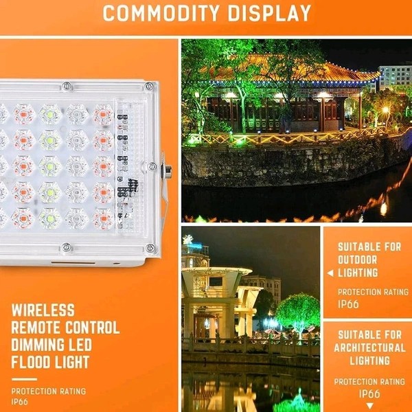 Brighten up your space in vibrant style with the FOZZBEE 50W RGB LED Flood Light! Featuring ultra-bright lens technology and multi-color RGB output, this light is perfect for outdoor decoration, events, garden lighting, or mood lighting. With remote control functionality, you can easily switch between colors, modes, and brightness levels – all from a distance.