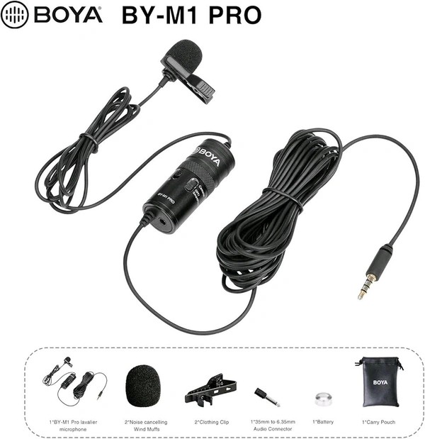 Deliver broadcast-quality sound with the BOYA BY-M1 Pro, a professional omnidirectional lavalier microphone designed for content creators, filmmakers, interviewers, and educators. With its 20-foot (6m) long cable, you get the freedom to move while recording crisp, natural sound — whether using a smartphone, DSLR camera, or laptop.