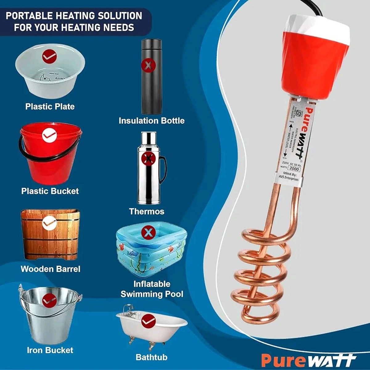 HEATWAVE PRO 1500W Waterproof Immersion Rod Heater – ABS Body, Quick Heating, Energy Efficient
