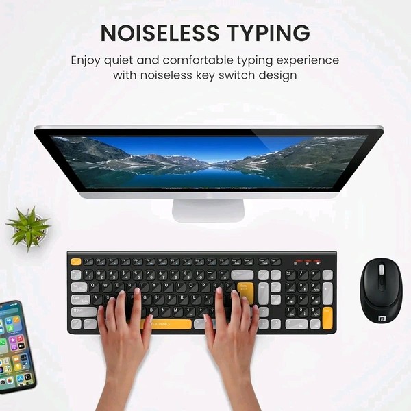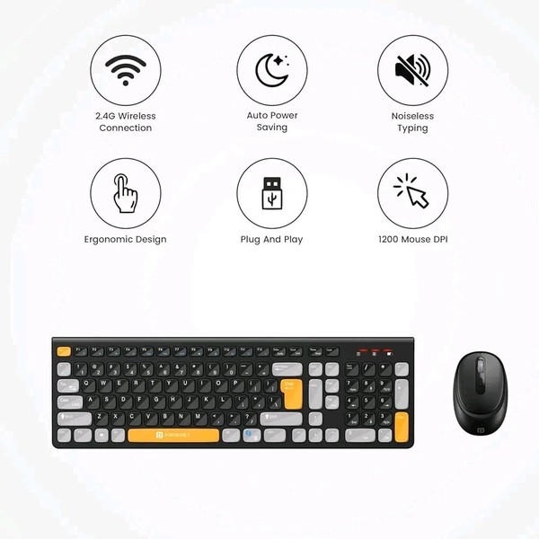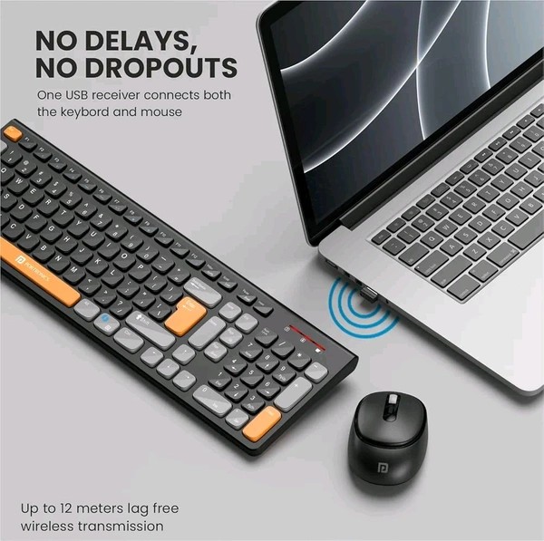 Portronics Key7 Combo Wireless Keyboard & Mouse – With Copilot AI, 2.4 GHz USB Receiver, 12 Shortcut Keys, Adjustable DPI Mouse (Up to 1600), 10M Key Life – Compatible with PC, Laptop, Mac (Black + Orange)