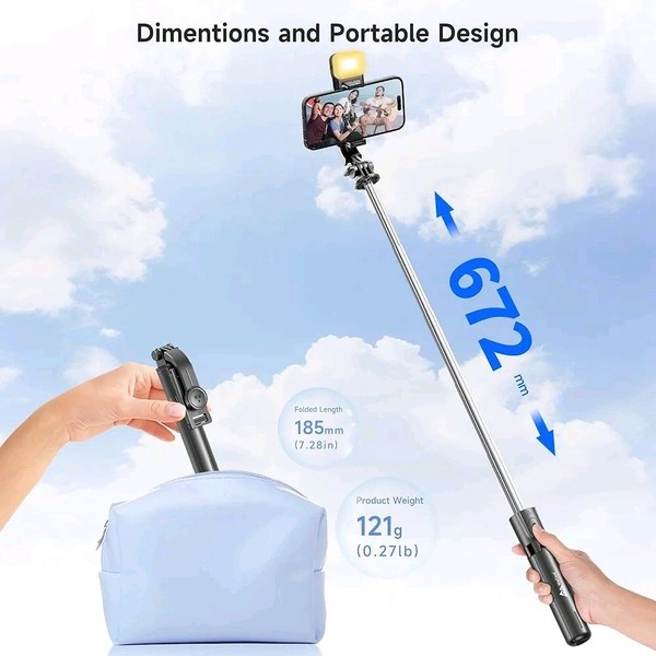 The built-in wireless remote makes hands-free photography and video effortless, while the compact foldable design ensures it fits right in your bag for on-the-go convenience.